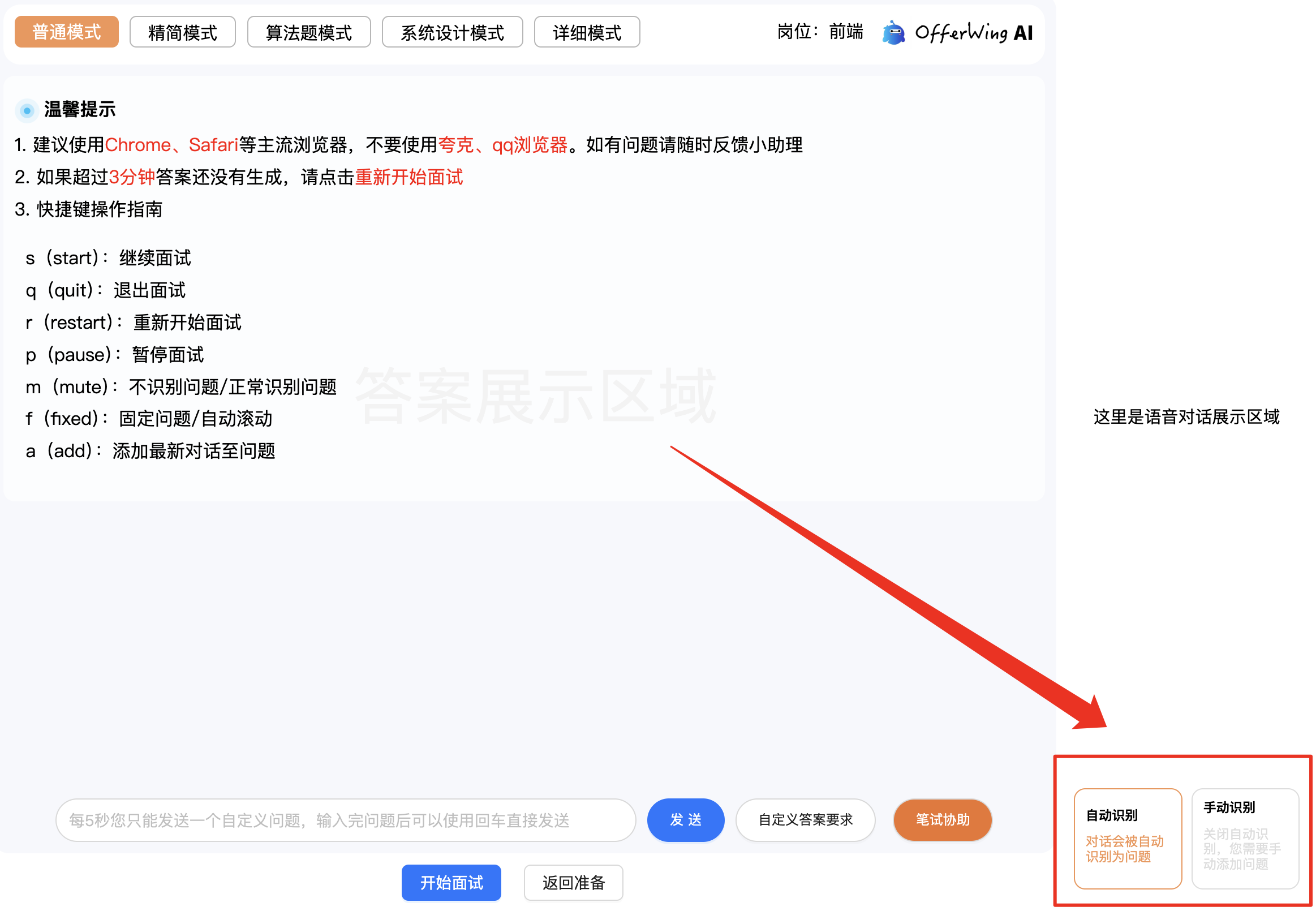 笔试协助怎么用?请查看笔试教程:OfferWing 笔试教程 。 - 问题:两种收音方式应该怎么选?